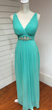 This beautiful long chiffon dress, with a diamante buckle looks stunning worn for an evening out with a pair of heels or can be dressed down with a pair of flat sandals.